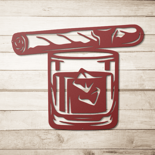 Cigar And Whiskey Glass Metal Wall Art | Gentlemen's Bar Decor
