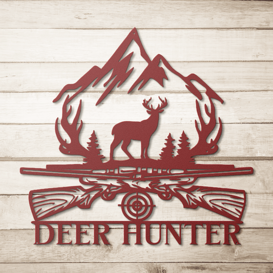 Deer Hunter Metal Wall Art Sign | Rustic American Lodge Decor