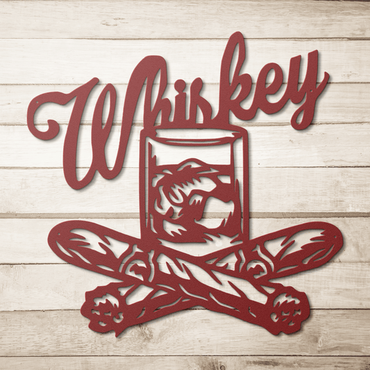 Whiskey & Cigars Metal Wall Art | Classic Bar Decor