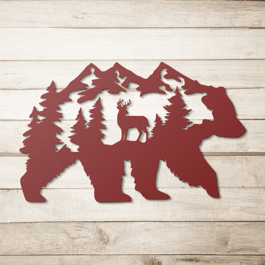 Bear With Mountain Scene Metal Wall Art | Cabin or Lodge Decor