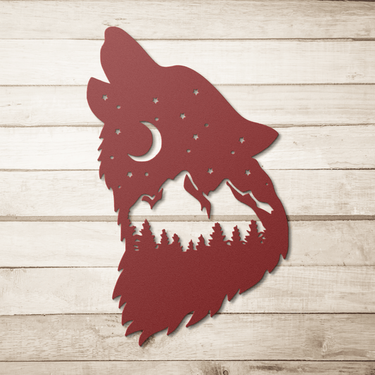 Wolf Howling With Moon Metal Wall Art | Wilderness Cabin Decor