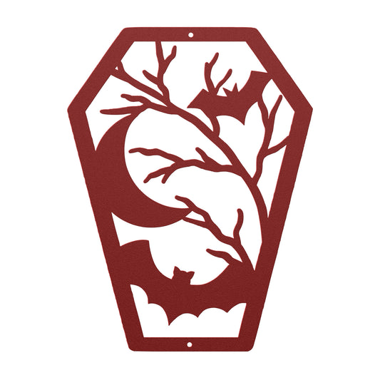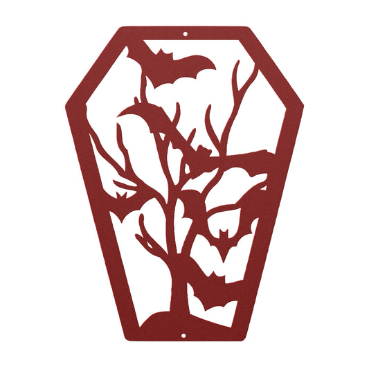 Halloween Coffin Metal Wall Art | Bats and Shadows Spooky Decor