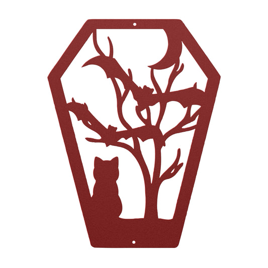 Halloween Coffin Metal Wall Art | Black Cat Gothic Grave decor