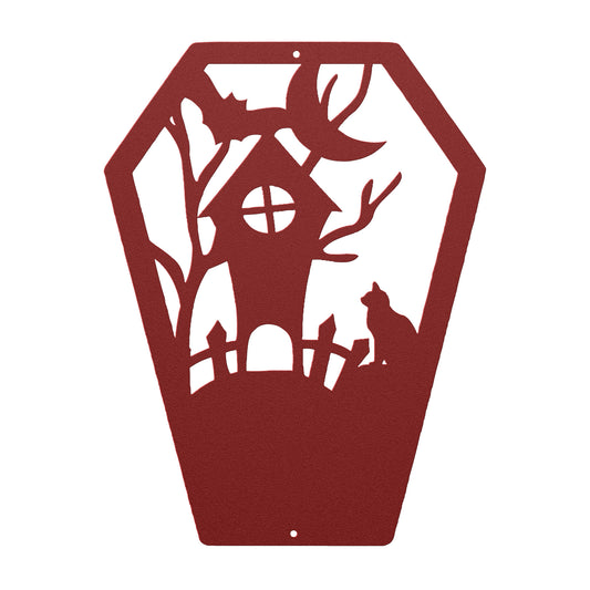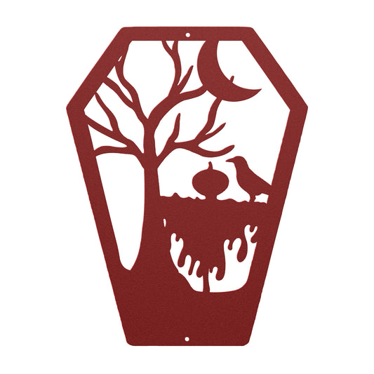 Halloween Coffin Metal Wall Art | Haunted House Creepy Decor