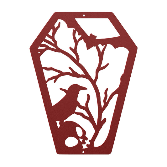 Halloween Coffin Metal Wall Art | Skull And Crow Horror Tribute