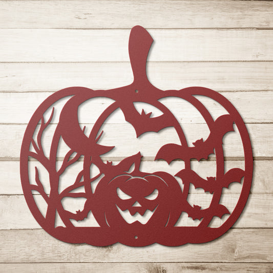Regular price From $79.00 USDRegular priceUnit price / perSale price From $79.00 USDHalloween Pumpkin Metal Wall Art | Bats And Coffin Spooky Night Design