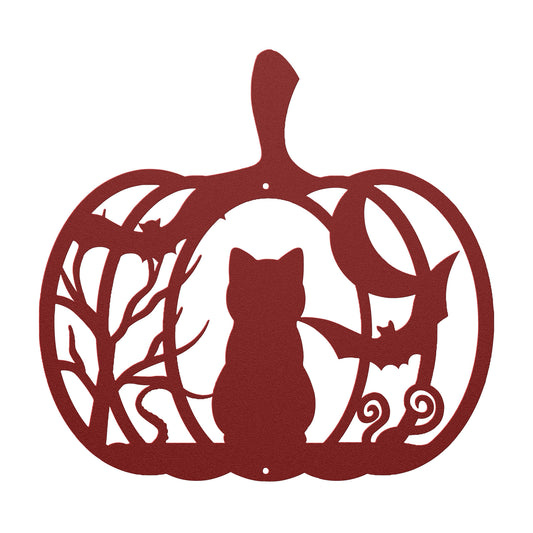 Halloween Pumpkin Metal Wall Art | Black Cat Creepy Night Tribute