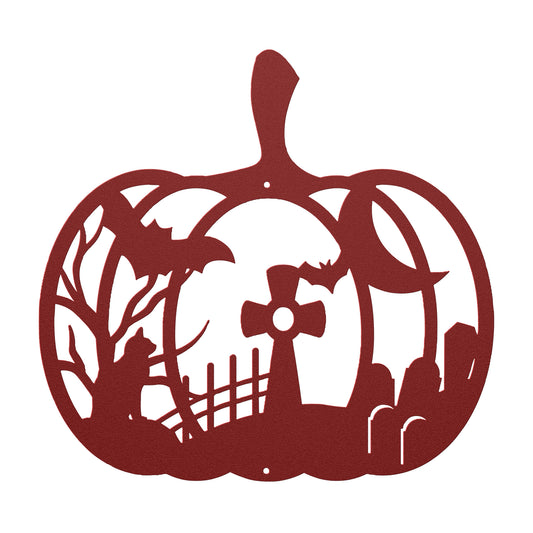 Halloween Pumpkin Metal Wall Art | Graveyard Silhouette Creepy decor