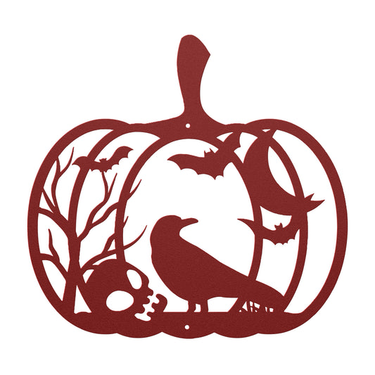 Halloween Pumpkin Metal Wall Art | Skull And Crow Haunted decor