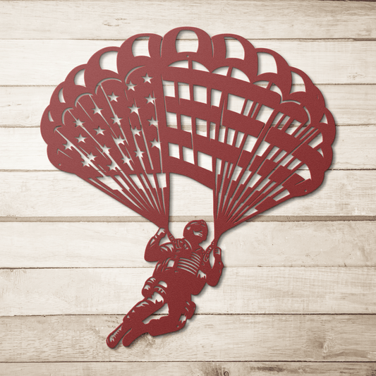 Paratrooper Jump Metal Wall Art | American Flag Airborne Tribute