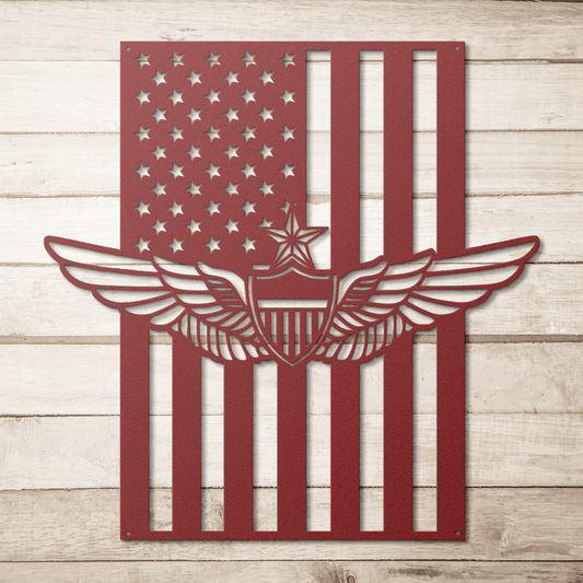 Aviation Wings Badge | American Flag Wall Art Tribute