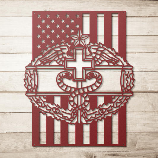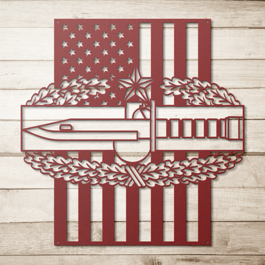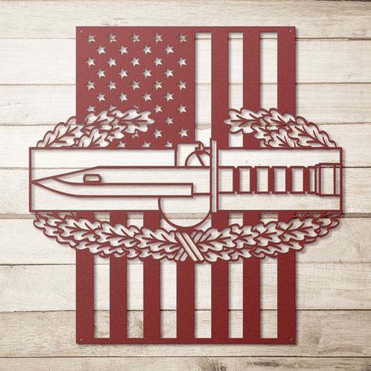 Combat Action Badge | American Flag Military Wall Art Tribute