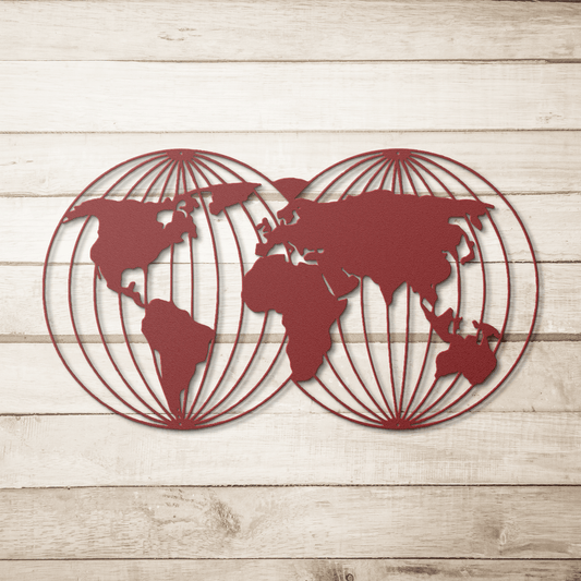North & South World Map Metal Wall Art | Modern Travel Lover's decor